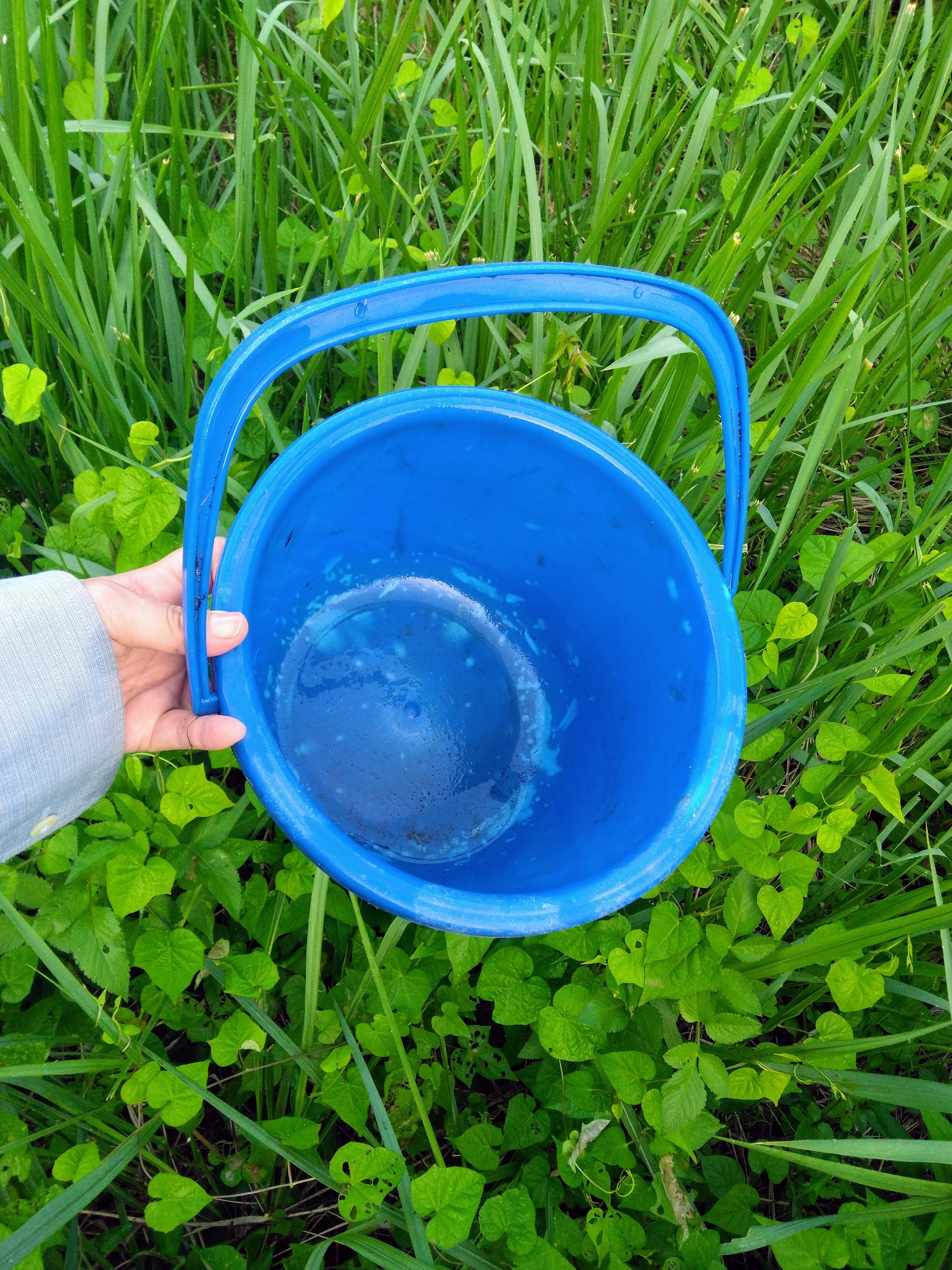 それをおもちゃのようなバケツでせっせと水を運ぶ。