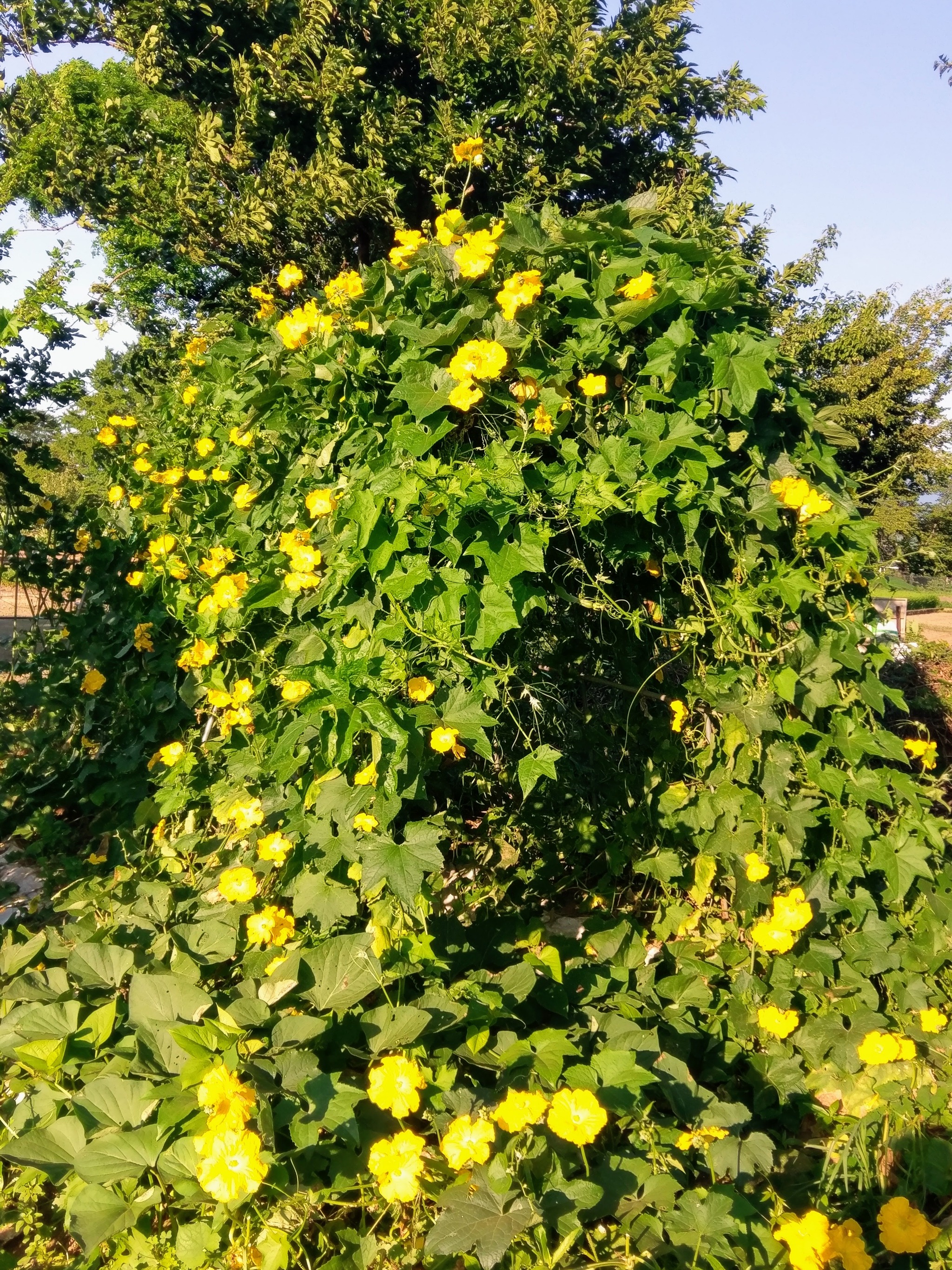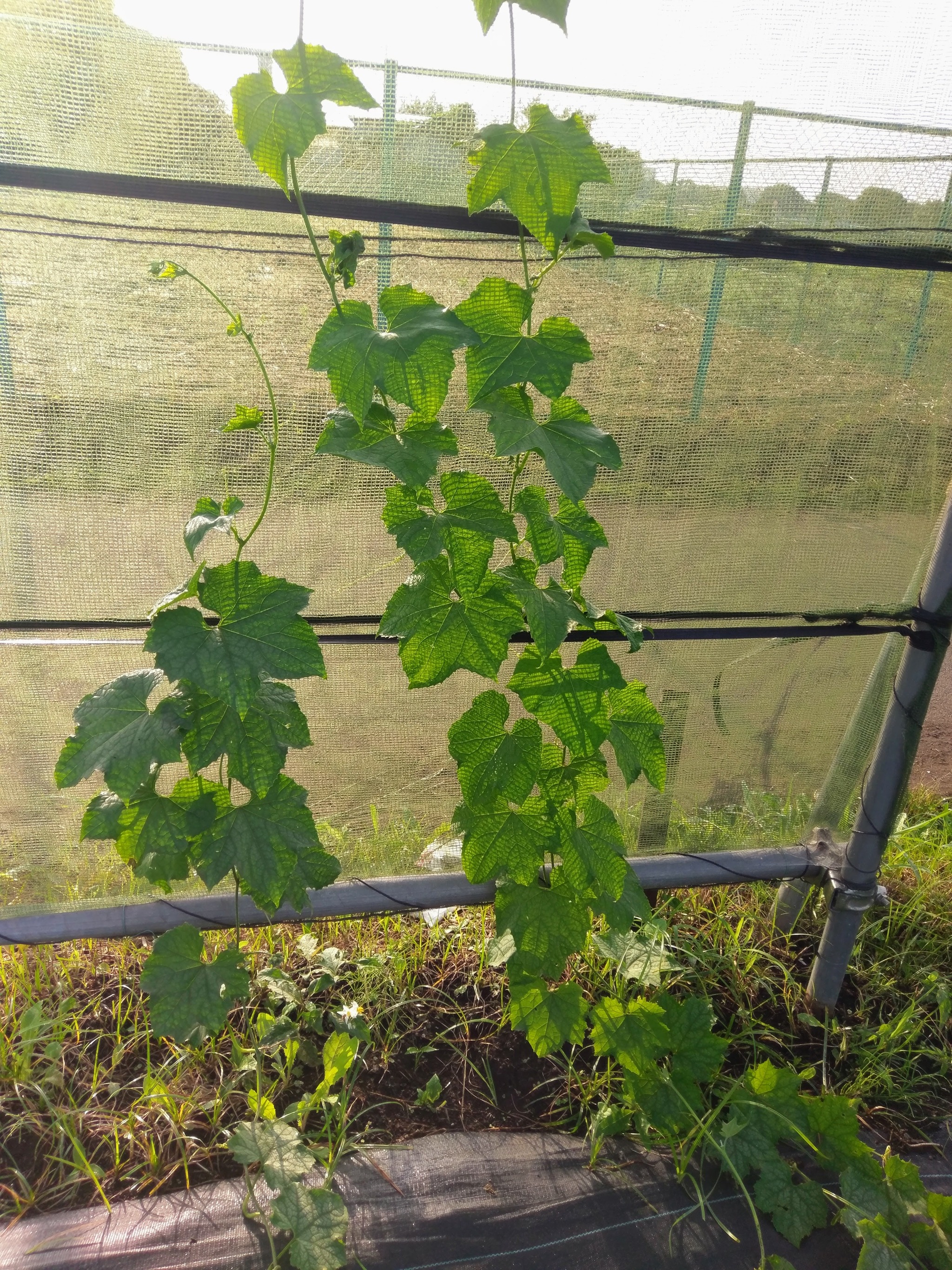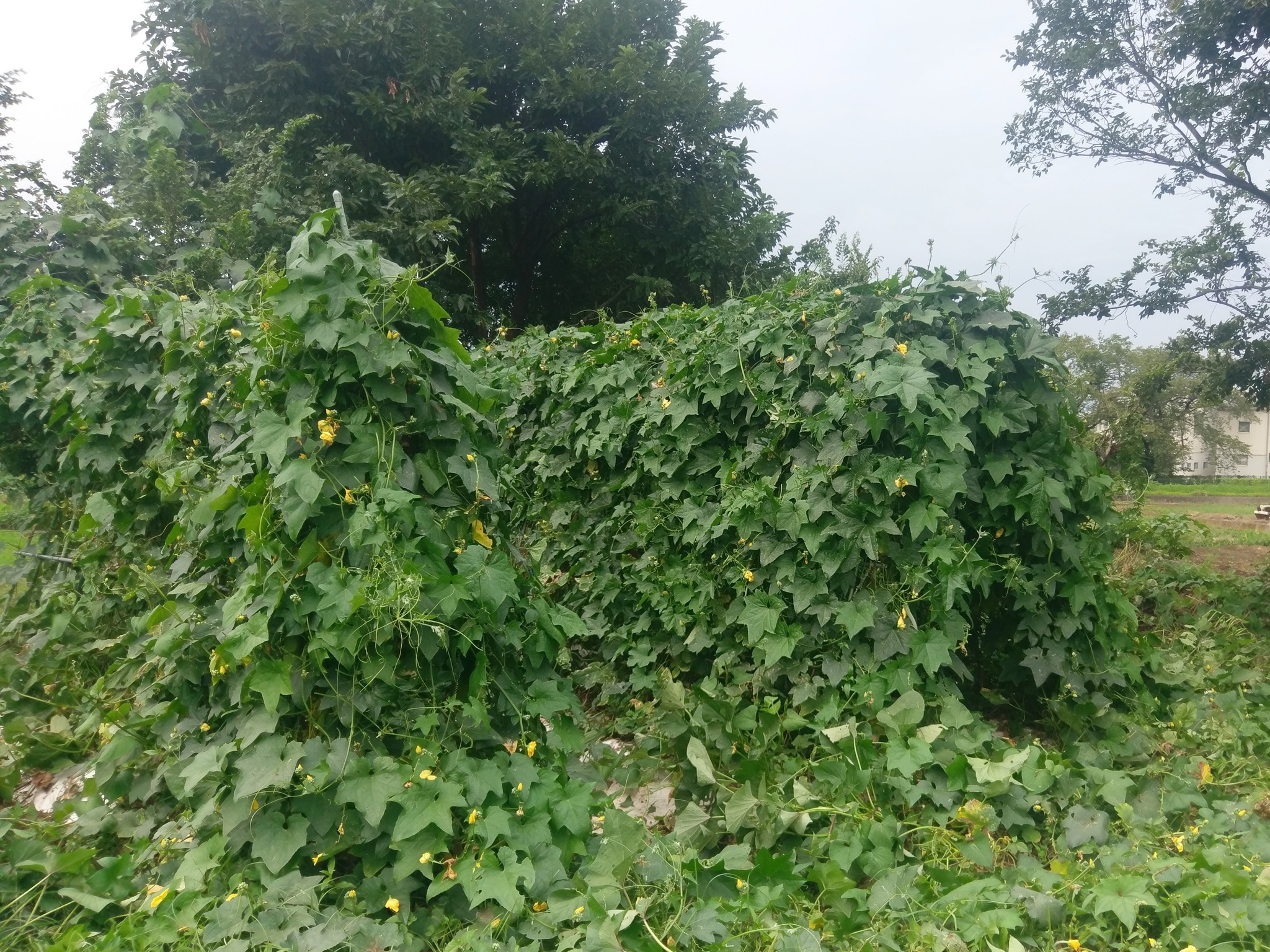 (地這えのへちま+さつまいもで、葉っぱの海!)